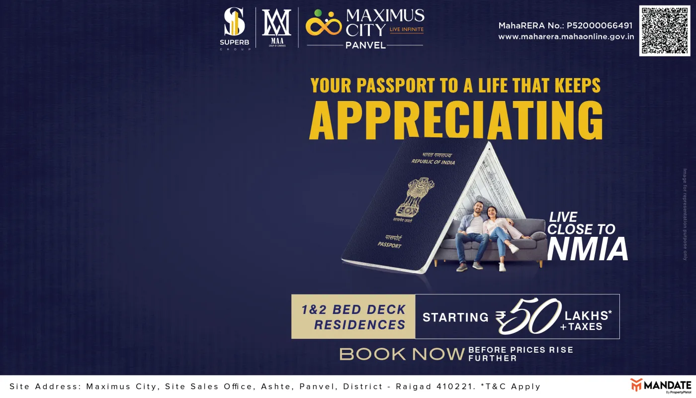 Every home is designed with efficient layouts, vaastu-compliant planning, and panoramic views, ensuring a living experience that’s both luxurious and practical. With 70% open green spaces, premium podium & rooftop amenities, and seamless connectivity to Mumbai and Navi Mumbai, Maximus City is the perfect blend of comfort, convenience & investment value.